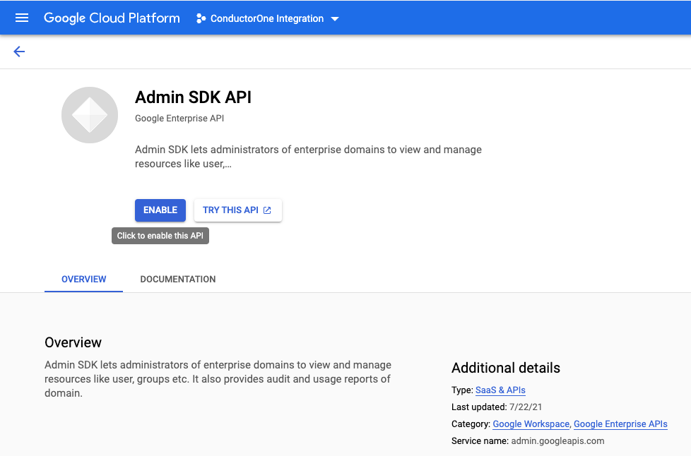 Search for and select the Admin SDK API.